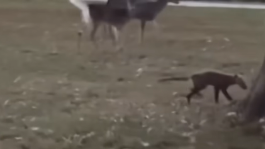 The strange sighting occurred on October 24 as Brittany Keller was on her way to work in Huntington, West Virginia. As she passed Ritter Park, she noticed a strange animal among a small herd of deer grazing on the grass. Intrigued by the sight, Keller stopped and managed to capture footage of the creature as it scurried along with the deer.