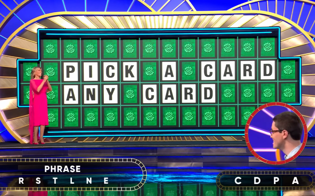 Time was ticking. With only seconds to go, Ralph first guessed, “Pick a card and card.” But just before the buzzer, he corrected himself: “Pick a card, any card.” It was right — and it won him a $40,000 bonus.